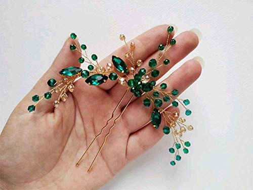 Deniferymakeup Fermaglio per capelli da sposa, colore: oro e verde smeraldo