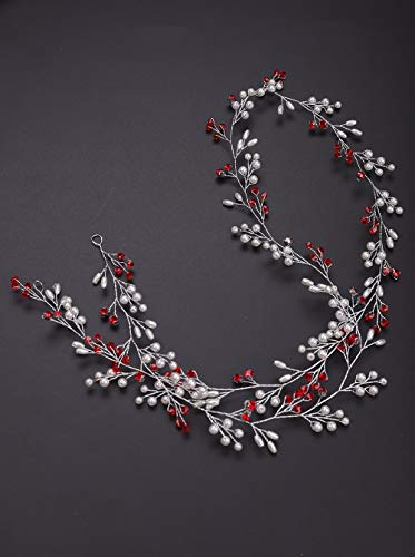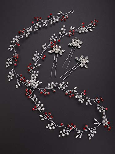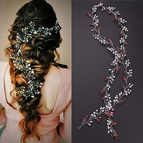 Deniferymakeup Perle extra lunghe e perline di cristallo per capelli da sposa, vite per capelli da sposa, accessori per capelli da sposa, accessori per capelli (rosso)