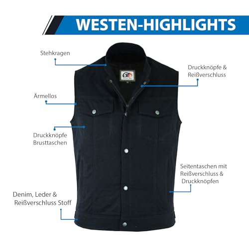 Denim Biker Kutte Gilet Gilet per motociclisti colletto alla coreana nero