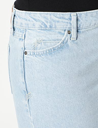 La gonna di jeans chiara ha un taglio sottile e molto sbiancata.