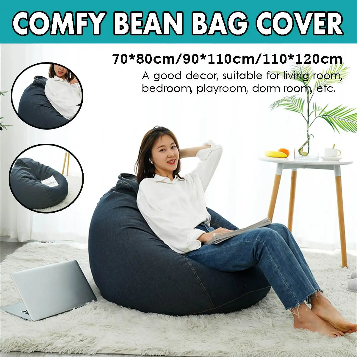 Denim Bean Bag Lazy Sofas Cover Lounger Seat Living Room Furniture Without Filler Pouf asiento Couch Tatami Chairs Cover 3 Sizes