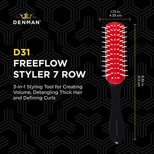 Denman D31 Curly Hair Brush (Black) 7 Row Styling Brush for Detangling, Separating, Shaping and Defining Curls - For Women and Men