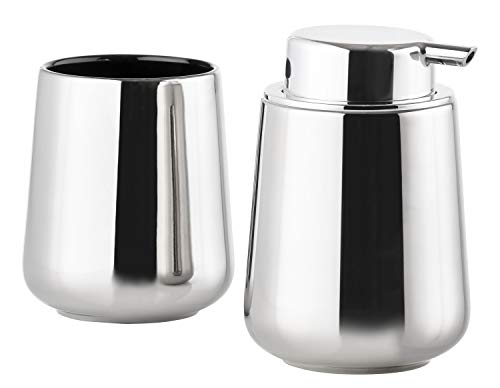 Zona pompa di sapone e bicchiere per spazzolini Nova Silver, porcellana, Argento lucido, ca. 12,7 + 10 cm H | 371147 | 5708760646470 ZO