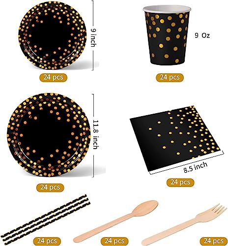 Accessori per feste per 24 ospiti: questo accessorio per feste contiene tutto ciò di cui hai bisogno per un massimo di 24 ospiti: 24 piatti piani 9", 24 piatti da dessert 7", 24 tovaglioli, 24 tazze.