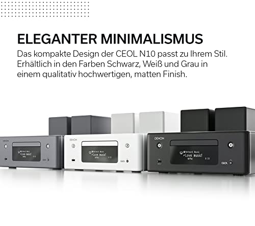 Denon CEOL N10 Mini impianto audio domestico, Bluetooth/WLAN/AirPlay 2/HEOS, Grigio, Bianco 130 W