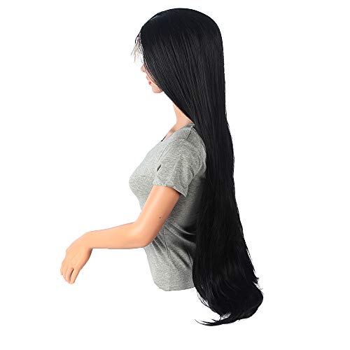 Ivan High Density 30inch Black Long Kanekalon Synthetic Lace Fornt Heat Resistant Glueless Wig With Baby Hair Pre Plucked Hair For All Skins Women.