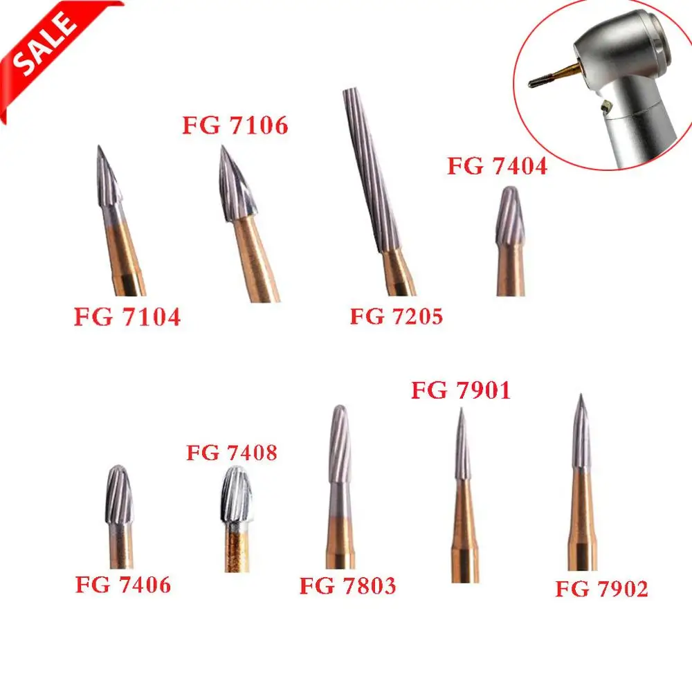 Dental Carbide Burs Drill Titanium Plated High Speed Tungsten Burs FG 7104/7106 /7205/7404/7406/7408/7803/7901/ 7902