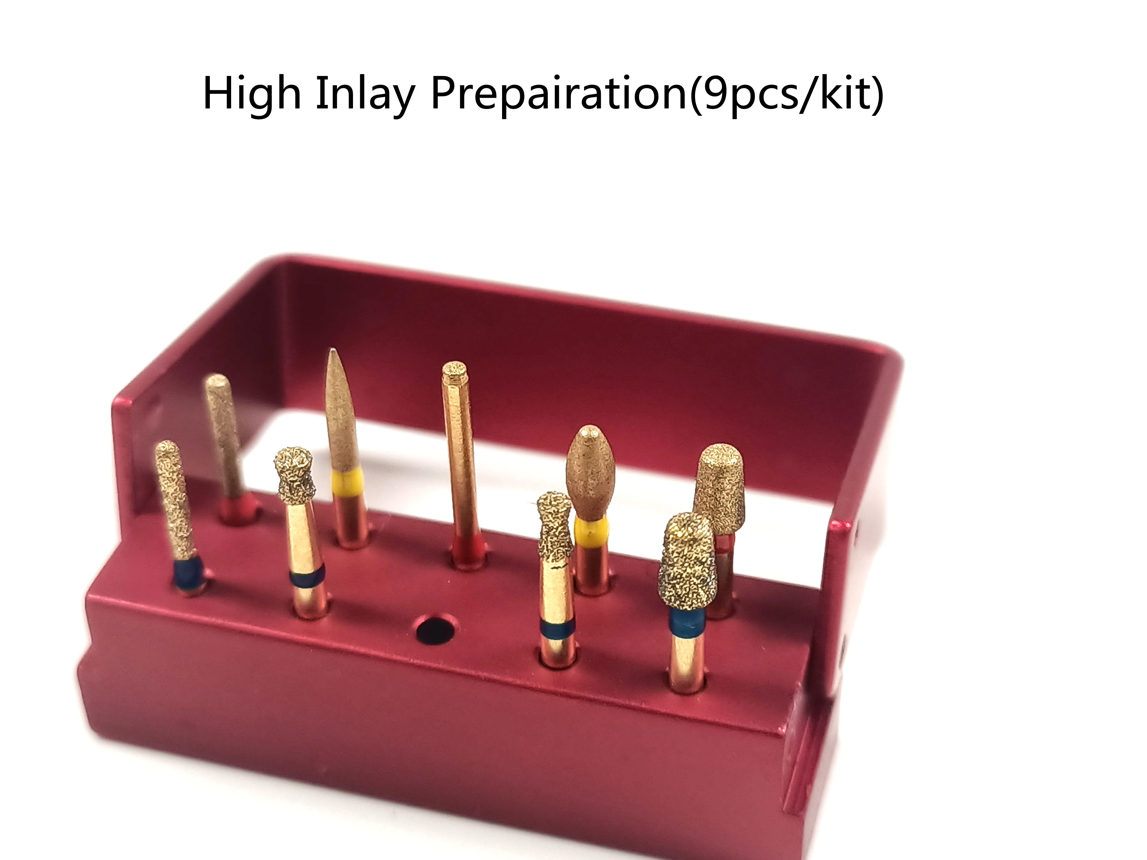 Dental Gold Diamond Burs High Inlay Prepairation 9pcs/kit