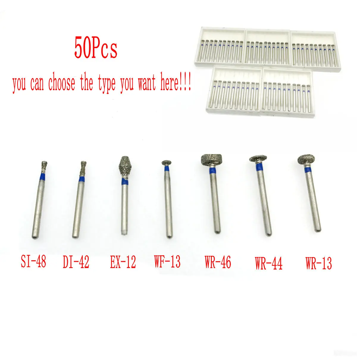 Dental Diamond Burs Inverted Cone with Collar Type dental high speed handpiece burs 50pcs Wheel/Barrel Type SI48/EX12/WR46/WR13