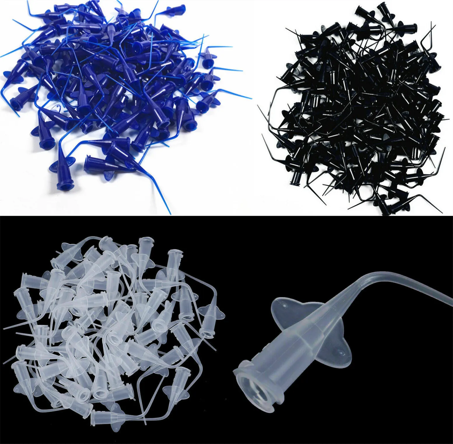 Dental Disposable Plastic Syringe Needle Tips Clear/Blue/Black