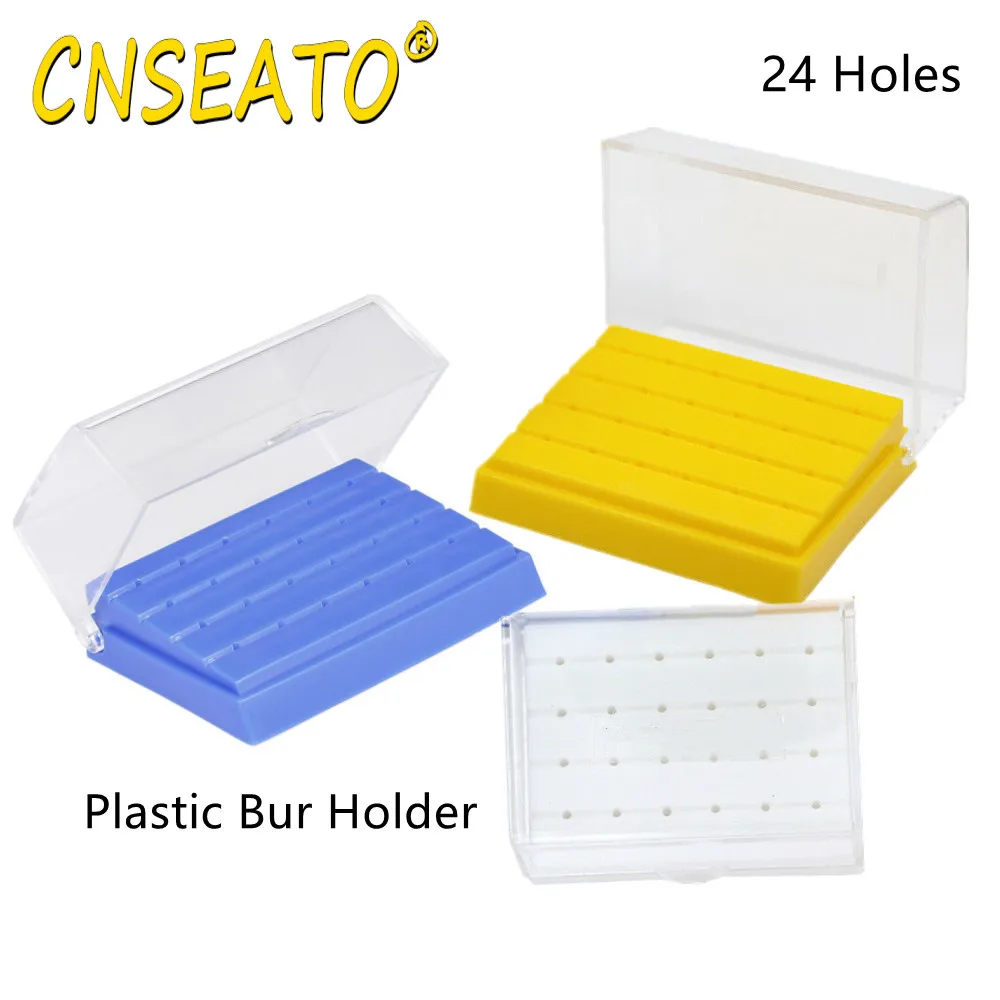Dental Burs Holder Block Box 24 Holes Drill Bit Holders Disinfection Carbide Emery Bur Case Plastic Dentist Lab Tools Equipment