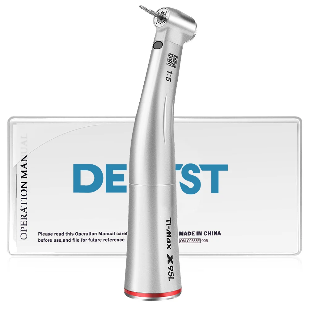 Dental 1:5 Increasing Red Ring Contra Angle Low Speed Inner Water Spray low Speed Push Handpiece Ti Max X95/X95L E-TYPE Motor