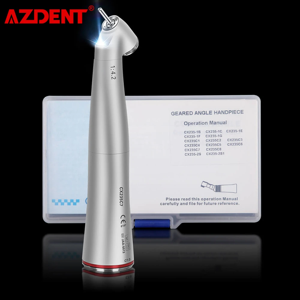 Dental 1:4.2 Increasing 45° LED Fiber Optic Contra Angle Head Electric Low Speed Handpiece Push Button 4 Way Spray Inner Channel