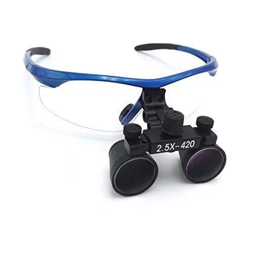 Mike Dental - Set di lenti binoculari chirurgiche, 2,5 x 420 mm, cono nero con luce a LED e scatola in alluminio, colore: Blu