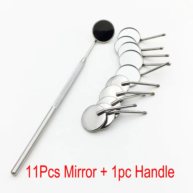 Dental Mirror Stainless Steel Mouth Mirror Oral Check Tools 11Pcs Mirrors with 1pc Handle