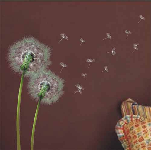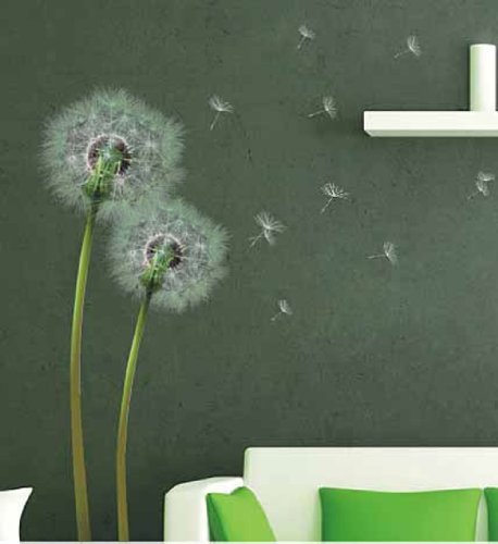 Denti di leone con gambo e semi al vento, adesivi, trasparenti, da muro, decorazione per stanze.