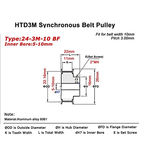 24 denti HTD 3M.Puleggia sincrona,foro 5/6/6.35/8/10/12/12.7,per larghezza 9/10/15mm 3M cinghia di temporizzazione,HTD3M.Puleggia CNC 24T 24.I denti ( Size: Bore 8mm, WIDTH: For Belt Width 15mm )