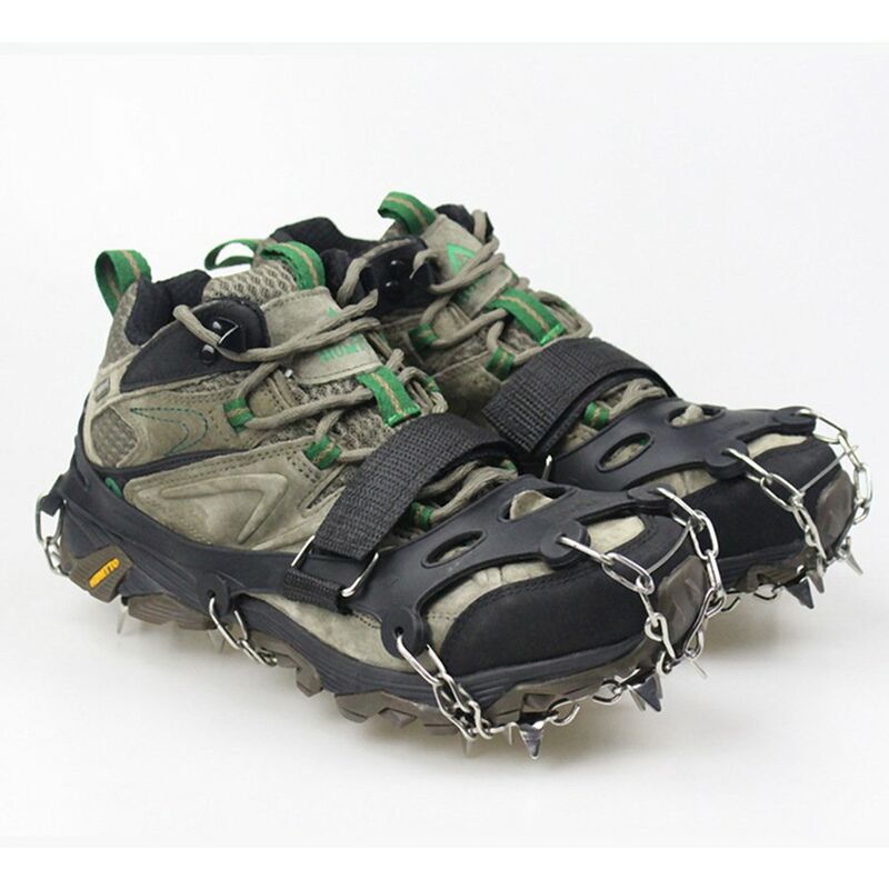 Più leggero e resistente: la fascia in elastomero è realizzata in elastomero termoplastico estensibile (TPE) che offre una perfetta flessibilità, protezione antiabrasione e antistrappo, che si adatta rapidamente a una varietà di calzature. PRATICITÀ: ha il maggior numero di chiodi della sua classe. Suole resistenti con tacchetti in acciaio inossidabile che possono facilmente mordere il ghiaccio e la neve scivolosa. Facile da indossare e camminare con sicurezza: facile da indossare e da togliere, facile da regolare il grado di impermeabilità, comodo. le tacchette da ghiaccio contengono due cinturini per scarpe in velcro per fissare il dispositivo continua sulle scarpe, camminando con sicurezza su tutti i terreni di neve, ghiaccio, fango, sabbia ed erba bagnata. Nome: 24 denti esterni antiscivolo tacchette, attrezzatura per arrampicata su ghiaccio e neve, tacchette in acciaio inossidabile a 24 denti, catena per scarpe da trekking Materiale: silicone TPE + catena in acciaio inossidabile
