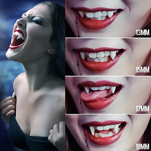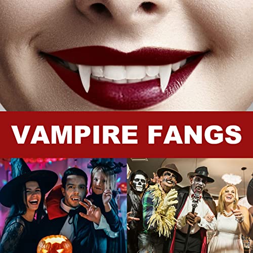 Denti da Vampiro,Canini da Vampiro,Vampire Fangs con Adesivo in Guttaperca,Cosplay di Festa di Halloween Denti Finti Vampiro,Vampire Teeth 4 Paia