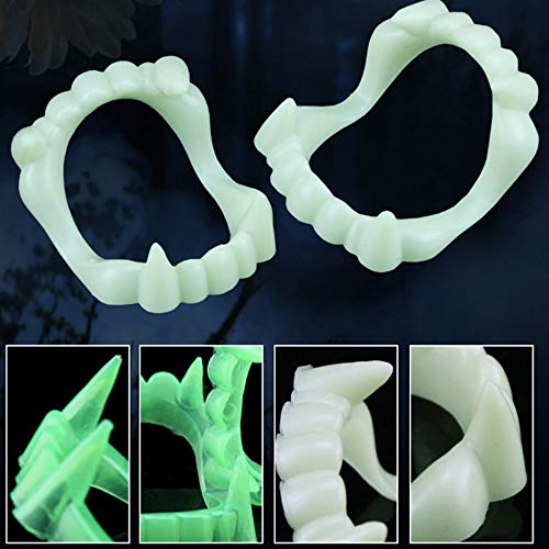 Protesi luminose: i denti morbidi al neon possono essere luminosi, spegnere la luce e guardarli brillare al buio, questi denti ti faranno sembrare molto orribile, queste zanne danno ai costumi da vampiro un nuovo look, avrai una festa indimenticabile.