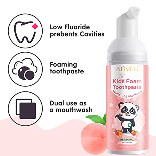 Dentifricio in schiuma per bambini, dentifricio per bambini a basso contenuto di fluoro per spazzolino a forma di U, dentifricio schiumogeno Anticavity(pesca)