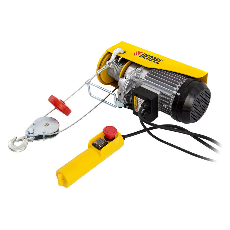 DENZEL - Argano elettrico TF-500 - 500 kg - 12 m - 1020 W Argano elettrico per lo spostamento e il sollevamento di carichi fino a 500 kg. Potente e resistente. Sollevare con facilità L'argano elettrico DENZEL TF-500 ti aiuta nel sollevamento e spostamento di carichi pesanti. Il suo motore elettrico da 1020 W consente di sollevare carichi fino a 500 kg ! Ideale per l'uso in officine automobilistiche, cantieri edili o anche a casa. Pratico, è in grado di sollevare vari carichi fino a un'altezza di 12 metri a una velocità di 10 m/min . Il kit include un set di fissaggi per l'installazione dell'argano. Potenza e affidabilità Sicurezza Il potente motore ha un avvolgimento in rame, resistente al surriscaldamento e alle sollecitazioni estreme. Garantisce così una lunga durata dell'apparecchio. Il motore ha delle nervature che consentono un raffreddamento efficace per massimizzare l'efficienza. L'argano dispone di un sistema di sicurezza che impedisce lo svolgimento accidentale sotto carico
