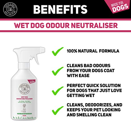 C&G | Deodorante per cani bagnati da 500 ml | ELIMINATORE OURDOUR SENZA ACQUA | Spray deodorante senza risciacquo | INGREDIENTI PER CANI SENZA RAPIDIENTI PER CANI | 100% senza croccanti