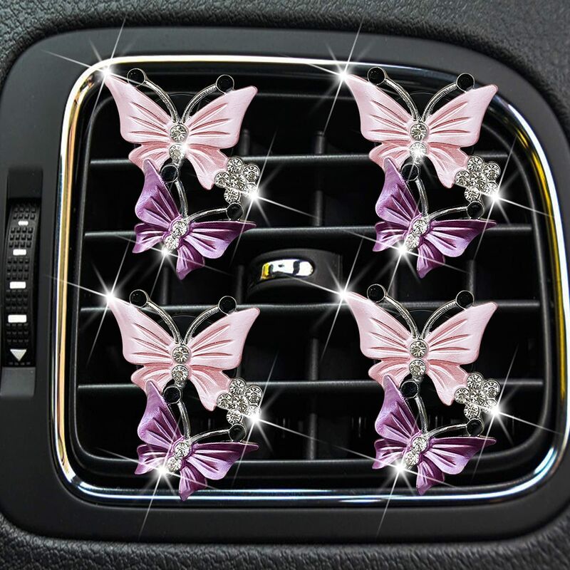 Materiale: La graziosa clip di uscita dell'aria condizionata per auto è realizzata in metallo, strass, che Glam Car Decor è facile da installare sulla presa d'aria dell'auto per decorare l'auto. La lavorazione è squisita, solida e durevole. Le clip del deodorante per auto sono ampiamente compatibili con Jeep BMW Toyota Mercedes Benz Chrysler Audi Lexus Honda RAM Dodge VW Nissan Cadillac Scopo: La clip decorativa per la presa d'aria dell'auto con diamante è facile da coprire efficacemente odori particolari, allergeni e impurità nocive e ti porta una fresca fragranza. La ventola a forma di elica facile da pulire e silenziosa porta divertimento ai tuoi viaggi e gli accessori per auto a farfalla sono abbastanza potenti da aiutare a fornire una comoda circolazione dell'aria senza bisogno di elettricità. Caratteristiche: Questa squisita decorazione per lo sfiato dell'auto è progettata da un arco a doppio strato, decorata con strass, carina e bella, e gradualmente ti rilassa e crea