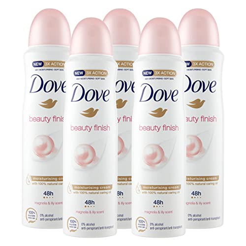 5x deodorante spray Dove Beauty Finish 48h Magnolia & Ninfea 0% Alcol Antitraspirante - 5 Deodoranti da 150ml ognuno