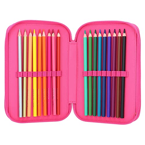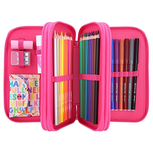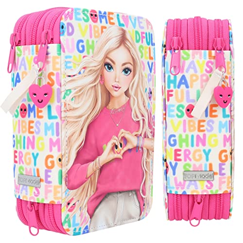 Depesche 11970 TOPModel SelfLove 3 Scomparti con Motivo di Modella, Scritte Ciondolo, Astuccio Rosa con matite Colorate, Righello, Forbici ECC, Stampa con Lettere, Multicolore