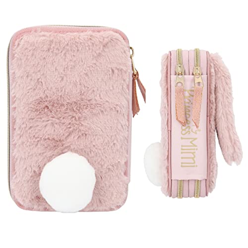 Depesche 12041 Princess MimiAstuccio a 2 Scomparti con Pelliccia di Peluche, Faccia da Coniglietto e Orecchie Flosce, Astuccio Rosa con Matite Colorate, Righello, 19 x 12 cm