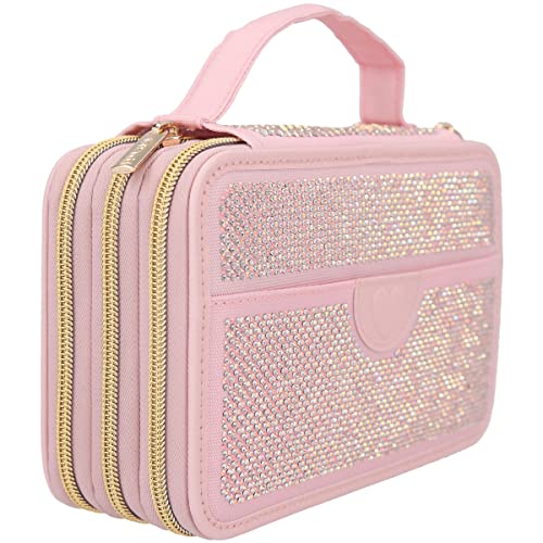 Depesche 12167 TOPModel Glam 3 Scomparti in Rosa con Piccole Pietre Glitterate, Impugnatura e Patch a Cuore, Astuccio con matite Colorate, Righello, Forbici ECC, Multicolore, ca. 20,5 x 14,5 x 7,5 cm