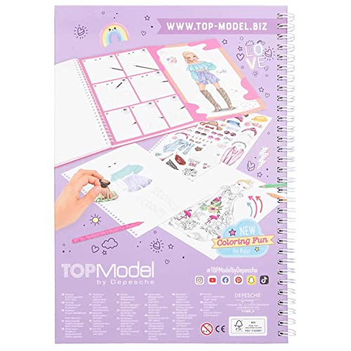 Depesche- TOPModel-Set di Libri Composto da Raccoglitore ad Anelli con 76 Pagine da colorare, 2 Fogli Adesivi, 4 Penne Gel, 10 Colorate e 1 Matita da Cancellare, Multicolore, 11485