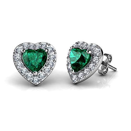 Dephini Orecchini pendenti a perno da donna, in argento Sterling 925, con cuore verde, zirconia cubica, placcatura in rodio, idea regalo per donne