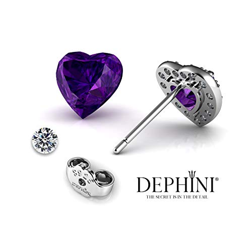 DEPHINI - Orecchini a perno da donna, in argento Sterling 925, con cuore viola, zirconia cubica, placcatura in rodio, idea regalo per donne