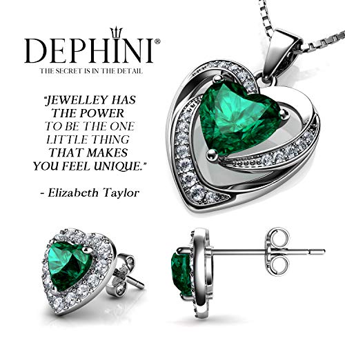 DEPHINI - Parure collana e orecchini a cuore verde - argento Sterling 925 - orecchini con cristallo e pietra portafortuna - Set di gioielli da donna - zirconia cubica