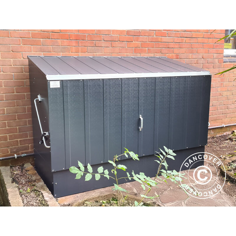 Prodotto: Larghezza: 1,96 m. Lunghezza: 0,89 m. Altezza laterale: 1,13 m. Altezza vertice: 1,33 m. Porta (L x A): 1,87x0,87 m. Materiali: Rivestimento in PVC, acciaio zincato (Plastisol) Testata per la neve: 100kg/m² Dimensioni interne: 1,8x0,84x1,09/1,29 m. Pannelli tetto: 0,7-1,4mm Pannelli pareti: 0,7-1,4mm Colore: Antracite Ignifugo: EN BS476 Part 6 (Class 0) + Part 7 (Class 1) UV: UV-resistente Impermeabile: Impermeabile Peso: 78 kg.: C Deposito per biciclette sicuro e comodo Design unico e brevettato Può contenere fino a 3 biciclette per adulti Esente da manutenzione Pannelli in acciaio rivestito in PVC a 8 strati Fissaggi in acciaio inox Pavimento in metallo integrale Azione di apertura a molla Altezza porta aperta: 2075 mm Accesso completo Serratura a chiave con doppio bullone Due punti lucchetto - nessun lucchetto incluso! Garanzia dei pannelli di 25