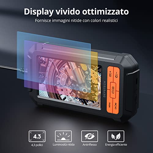 DEPSTECH Endoscopio Doppia Lente 1080P HD Telecamere Ispezione Schermo da 4,3'' Videocamera Digitale Cavo Semirigido da 5M Sonda Impermeabile da 7,9mm Endoscopica con 7 LED, Valigetta, Scheda 32G -5M