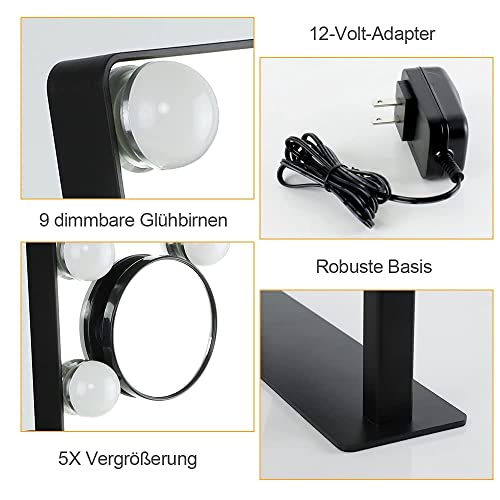 Depuley Hollywood Specchio da trucco con illuminazione, girevole a 360° con 3 colori, 9 luci a LED dimmerabili, colore nero, specchio cosmetico con luce per tavolo da toeletta, bagno e soggiorno