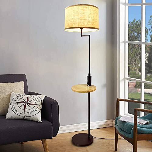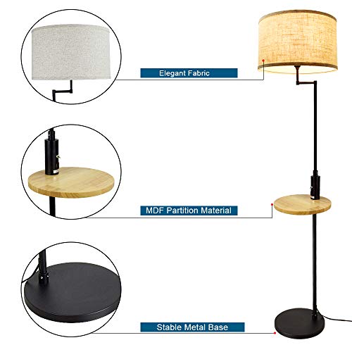 Mensola rotonda in legno: la lampada da terra è dotata di un robusto tavolo in legno massiccio, pannello in legno resistente. Durante la creazione dell'illuminazione brillante, e puoi anche posizionare piccoli oggetti sul tavolo, rendere la tua vita ordinata e fornire comodità durante la lettura.