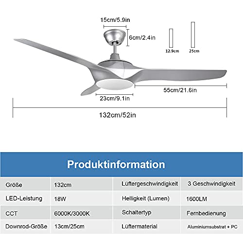 【Materiale di alta qualità】 La ventola da soffitto con 3 grandi pale del ventilatore in lamiera di alluminio con un potente motore in acciaio sabbiato non solo ha un forte vento, ma continua anche a funzionare in modo rapido e silenzioso. Chip LED a risparmio energetico da 18 W integrati e copertura della lampada esterna in vetro smerigliato, trasparente e CRI> 80. Inoltre, il corpo della lampada è principalmente realizzato in ferro di alta qualità, solido e spesso.