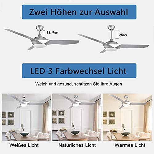 Depuley Ventilatore da Soffitto con Luce LED, Ventilatore Super Silenzioso da 58W con Luce Dimmerabile da 18W e Vento Invernale, Velocità del Vento Regolabile, Plafoniera con Timer per Soggiorno
