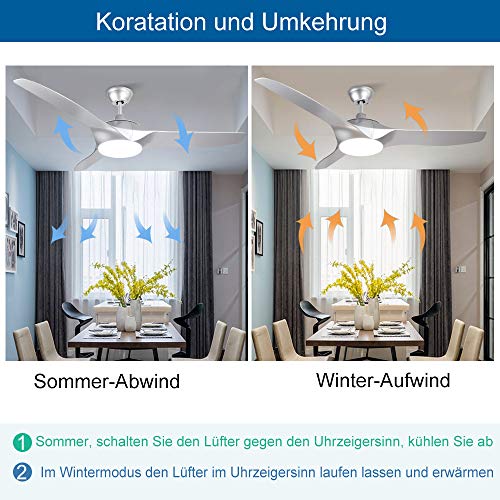 【Circolazione del vento e dell'aria invernale】Questa ventola ha la funzione del vento invernale e del vento estivo.Quando si utilizza in inverno, è possibile utilizzare la funzione di corrente ascensionale.Non porta la sensazione del vento, ma accelera la circolazione dell'aria interna. L'uso in uno spazio ristretto, in particolare con il riscaldamento, può fornire uno spazio di aria calda e fresca.