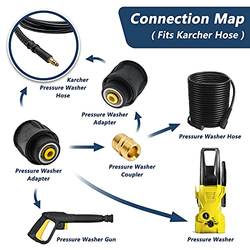 [Funzionamento semplice]: il connettore in linea del tubo ad alta pressione della macchina per la pulizia ad alta pressione Karcher, l'interfaccia a innesto rapido a un pulsante è fissata saldamente e in sicurezza senza perdite d'acqua e scarico della pressione.