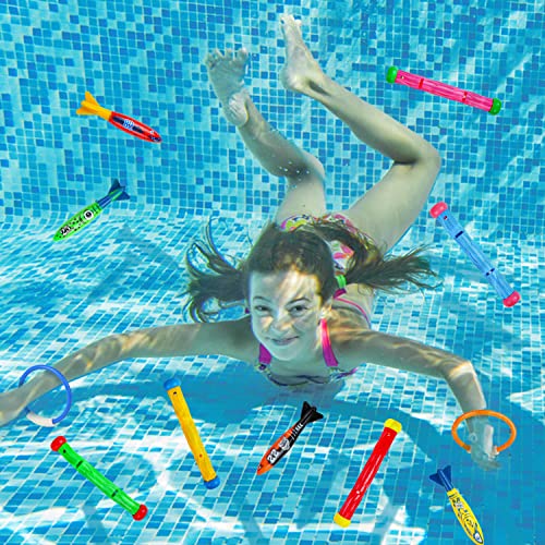 DERAYEE 14 Pezzi Giocattoli da Immersione,Giocattoli da Piscina per Bambini,Immersione Subacquea Giochi da Allenamento,Set Nuoto Giochi d'affondamento Addestramento Regalo
