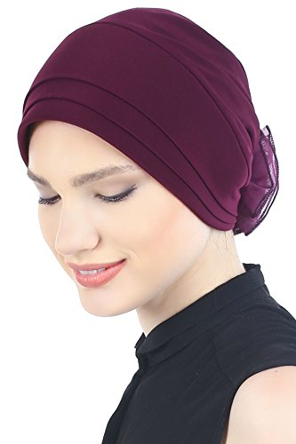 Deresina Headwear Elegante, vorderse itig geopolster e gefalteter Huet con Chiffon Rose per la Perdita di Capelli, Cancro, chemioterapia Lila Taglia Unica