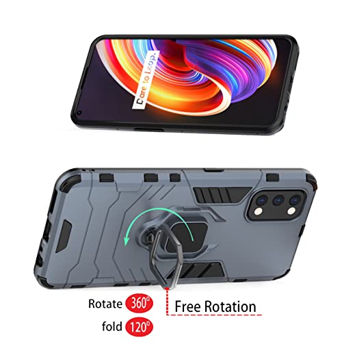 DERHAN Cover per Realme 7 Pro con Vetro Temperato, Custodia Protettiva Resistente Antiurto Robusta Case con Supporto Magnetico Rotante a 360° - Marino