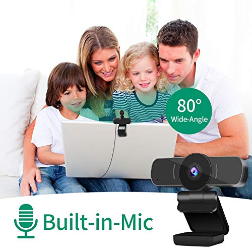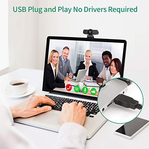 DERICAM Webcam, HD 1080P Webcam, USB Webcam, Play e Plug Computer Camera per PC/Laptop/MacBook con Microfono incorporato, Cover per la privacy e clip girevole flessibile