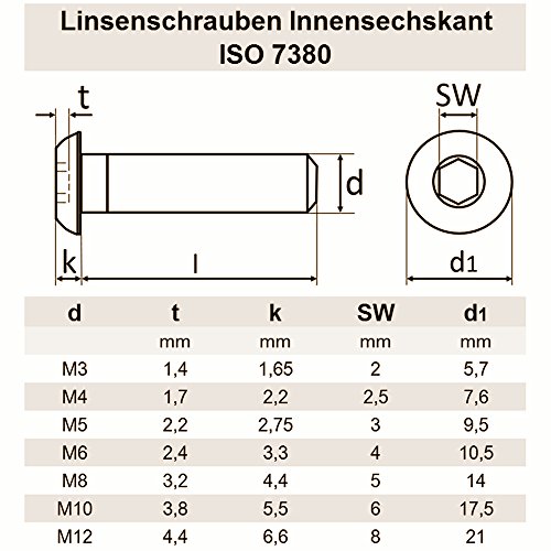 Dering Viti a testa bombata con esagono incassato, ISO 7380, in acciaio inox A2, 100 pezzi, antiruggine