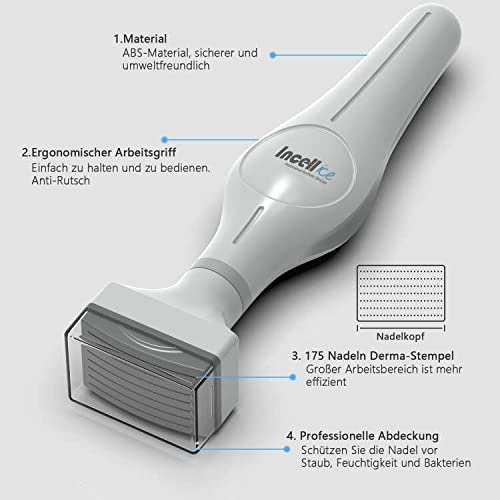 Istruzioni chiare - Le istruzioni sulla confezione mostrano quante volte e come utilizzare il timbro Microneedling per ottenere i migliori risultati. Confezione sigillata per un uso sicuro. (Una versione PDF del manuale tedesco è disponibile per il download)